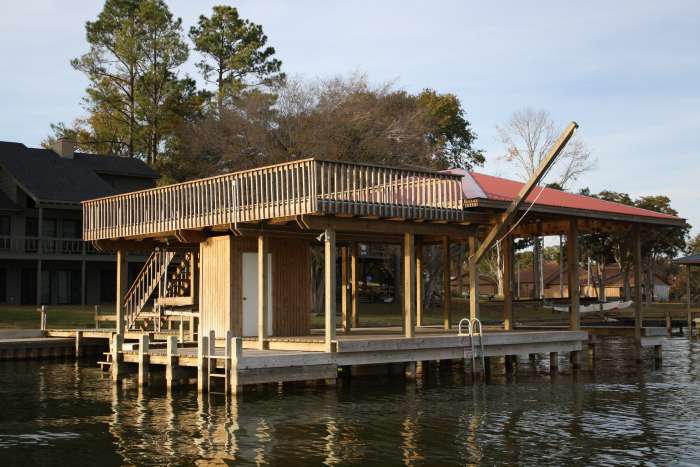 Our boathouses are built to last! They are constructed using treated wood materials designed for salt and fresh water along with the highest quality workmanship available. Every boathouse on Lake Livingston is designed especially for our customers. We make your dreams a reality!